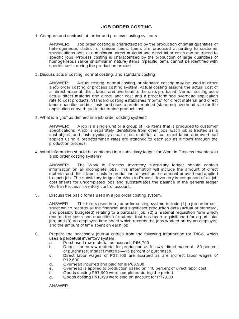 Job Order Costing Pdf Debits And Credits Cost Of Goods Sold